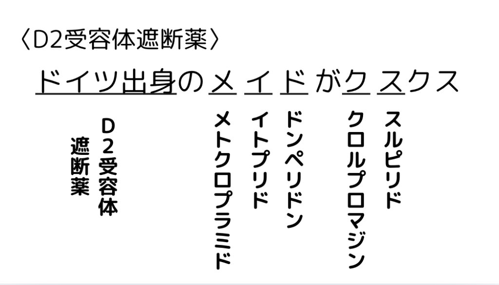 【D2受容体遮断薬】薬学ゴロ(薬理)