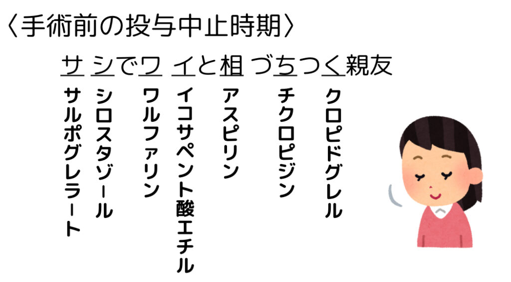 【手術前の投与中止時期】薬学ゴロ(実務)